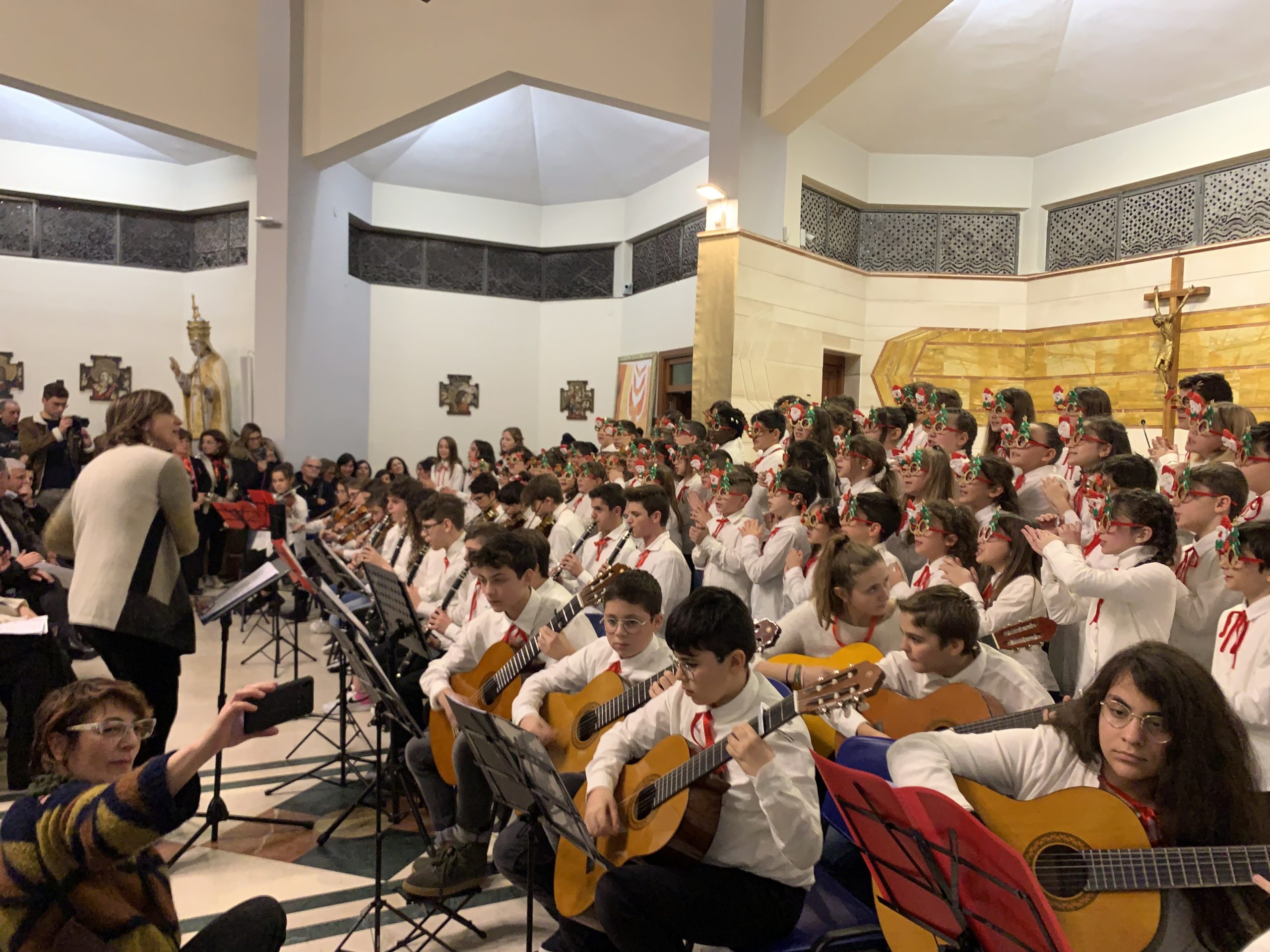 Davanti all’albero di Natale della scuola, ha preso vita una raccolta alimentare per i cittadini bisognosi della Parrocchia di San Rocco e della Parrocchia San Pio X. Quest’ultima ha accolto e ospitato il coro di canti tradizionali delle quarte della Marconi oltre che il concerto principale dell’Istituto Comprensivo, grande momento comunitario aperto alla città tutta.